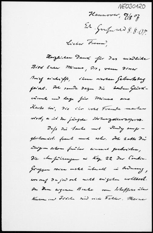 Brief von Paul Stäckel an Friedrich Engel vom 7.8.1907