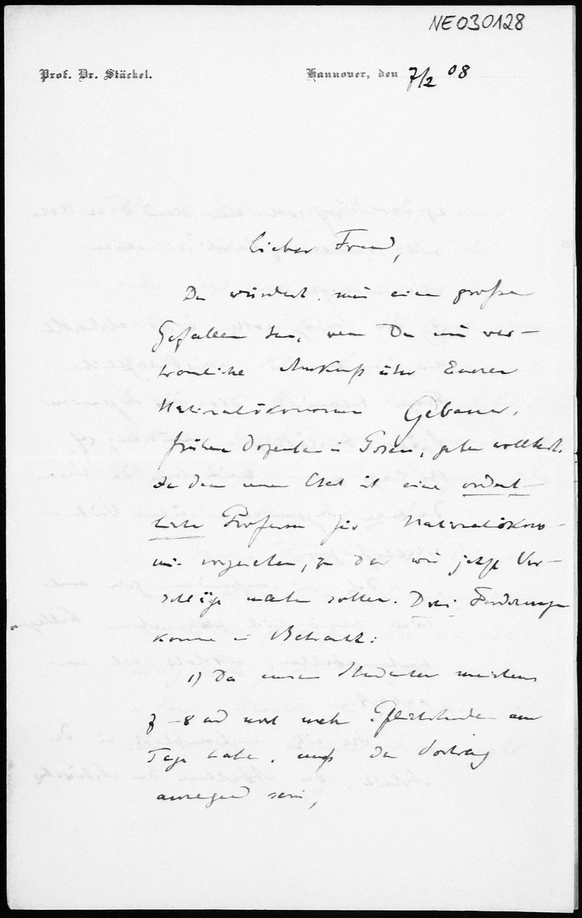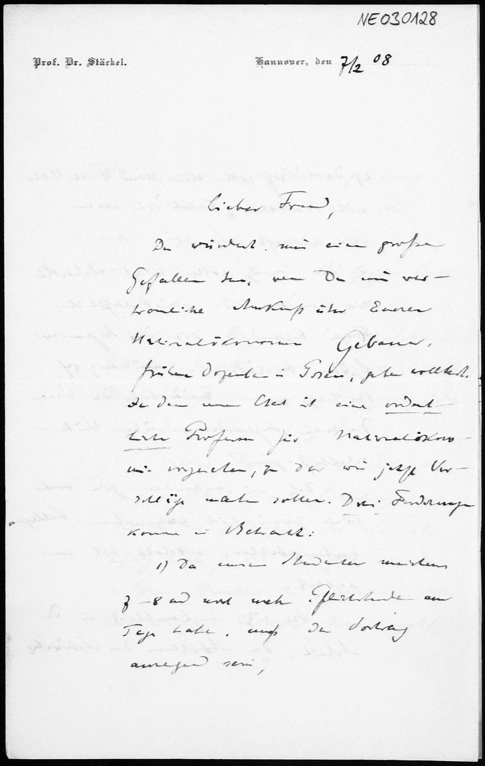 Brief von Paul Stäckel an Friedrich Engel vom 7.2.1908