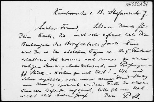 Postkarte von Paul Stäckel an Friedrich Engel vom 24.4.1908