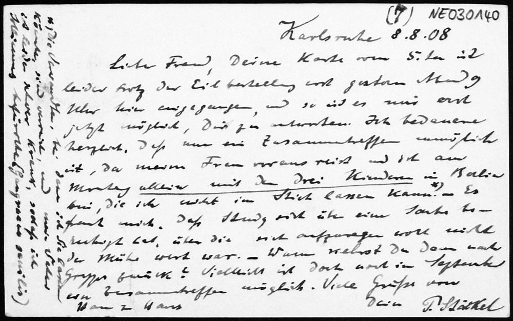 Postkarte von Paul Stäckel an Friedrich Engel vom 7.8.1908