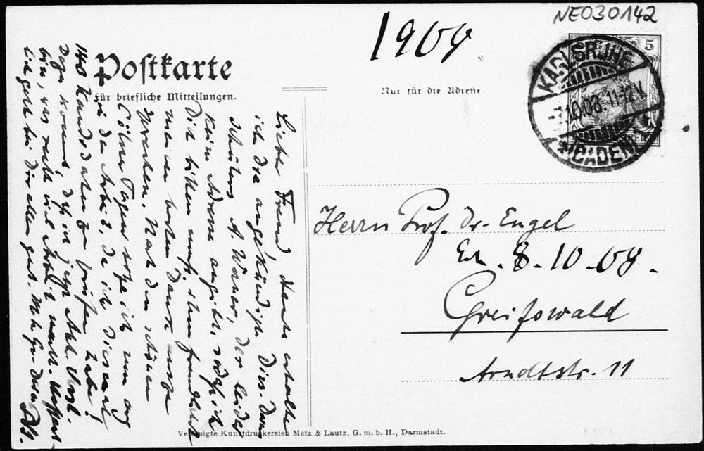 Ansichtskarte von Paul Stäckel an Friedrich Engel vom 7.10.1908