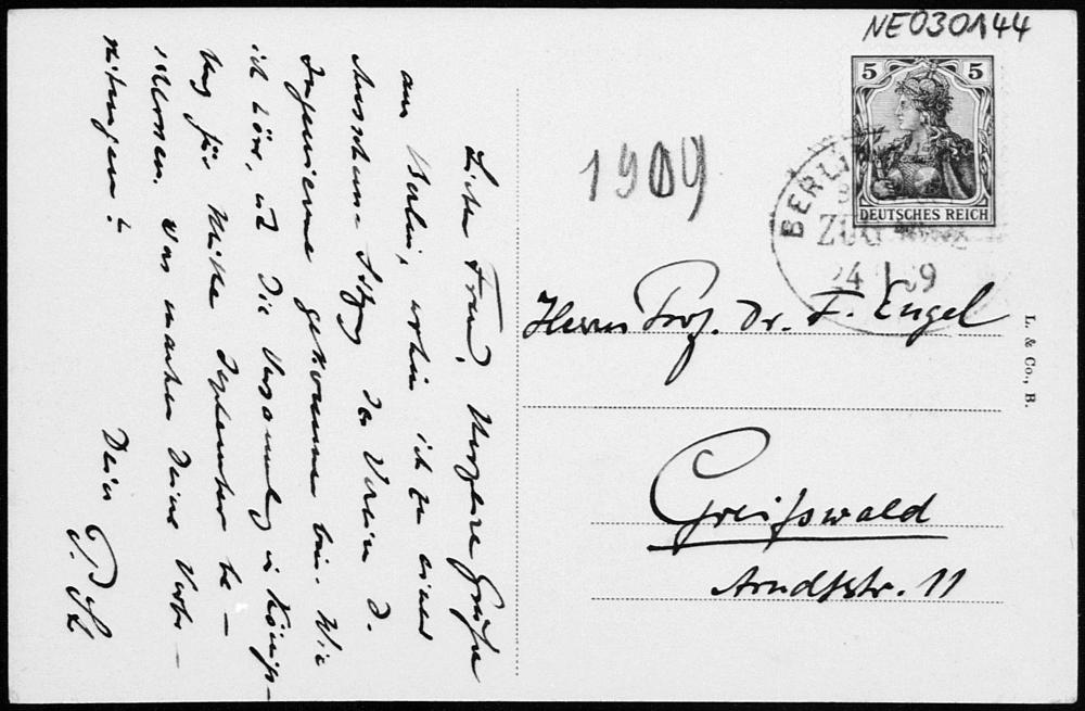 Ansichtskarte von Paul Stäckel an Friedrich Engel vom 24.1.1909