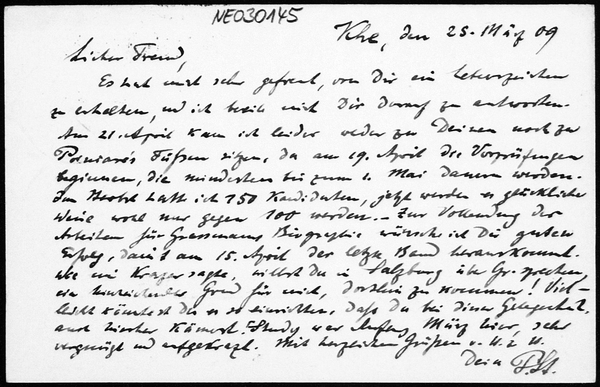 Postkarte von Paul Stäckel an Friedrich Engel vom 25.3.1909