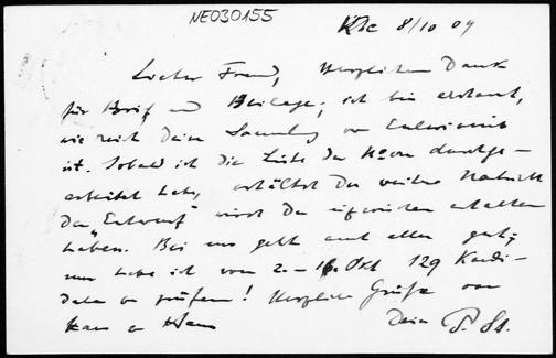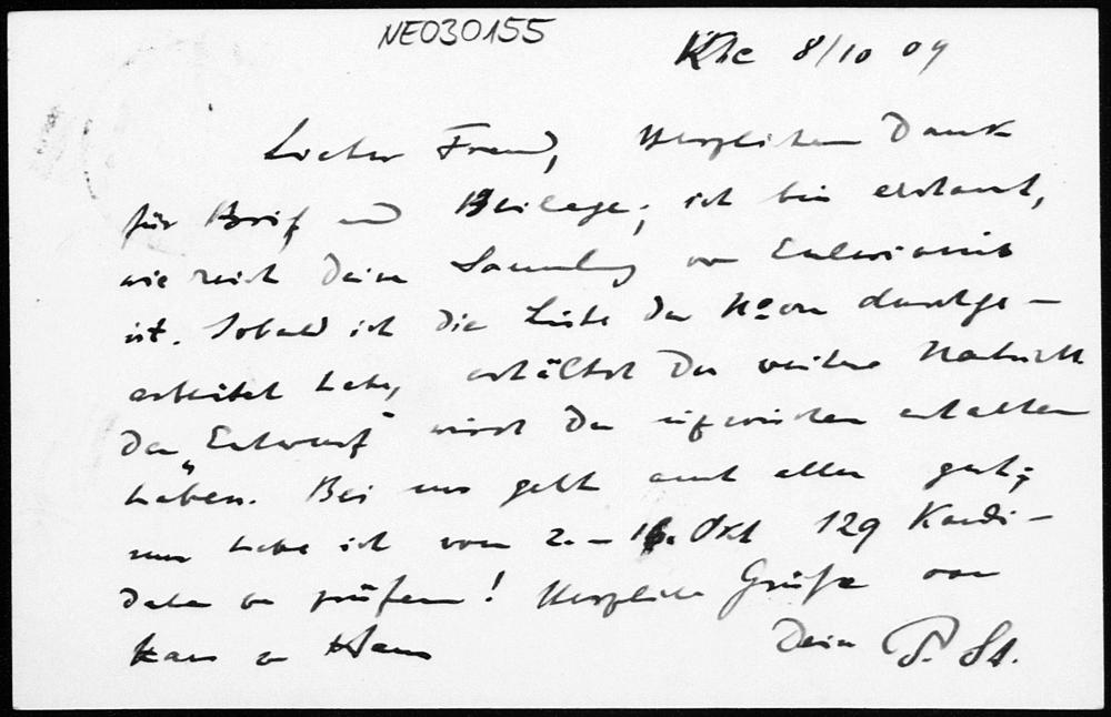 Postkarte von Paul Stäckel an Friedrich Engel vom 8.10.1909