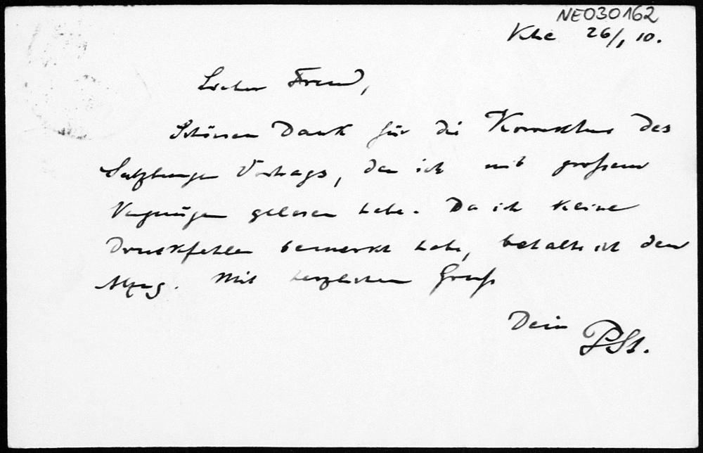 Postkarte von Paul Stäckel an Friedrich Engel vom 26.1.1910
