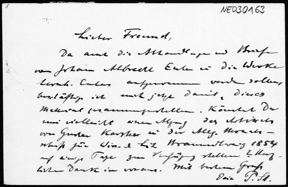 Postkarte von Paul Stäckel an Friedrich Engel vom 13.2.1910