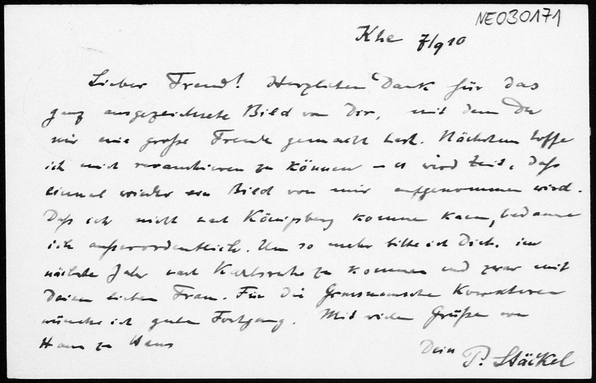 Postkarte von Paul Stäckel an Friedrich Engel vom 7.9.1910