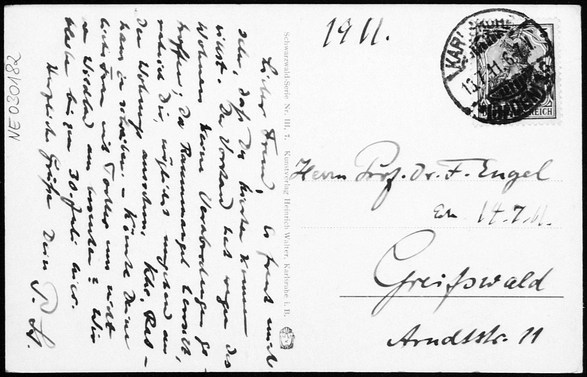 Ansichtskarte von Paul Stäckel an Friedrich Engel vom 13.7.1911