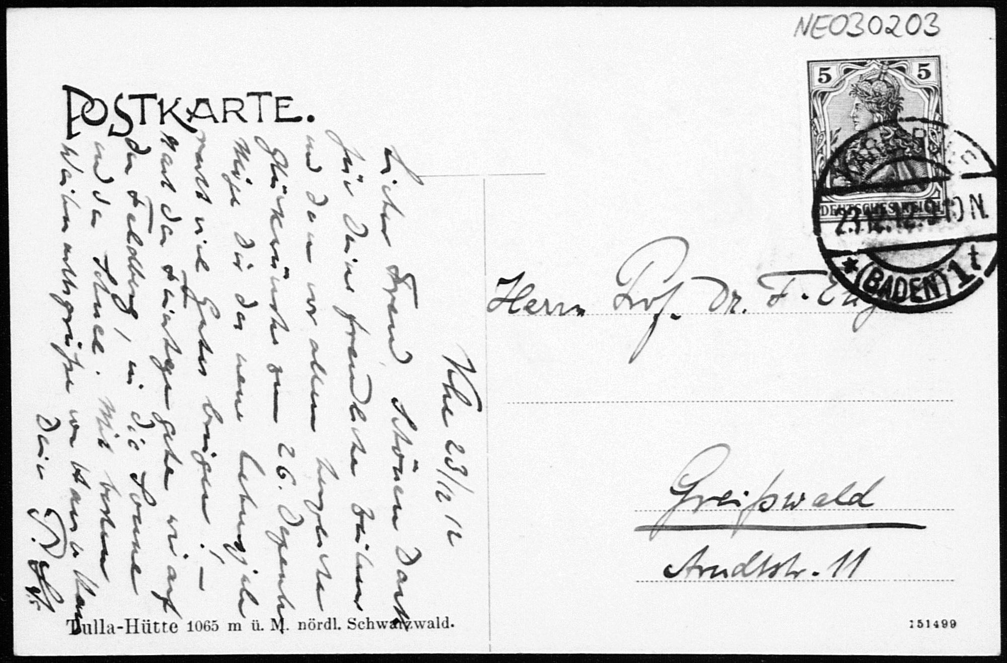 Ansichtskarte von Paul Stäckel an Friedrich Engel vom 23.12.1912