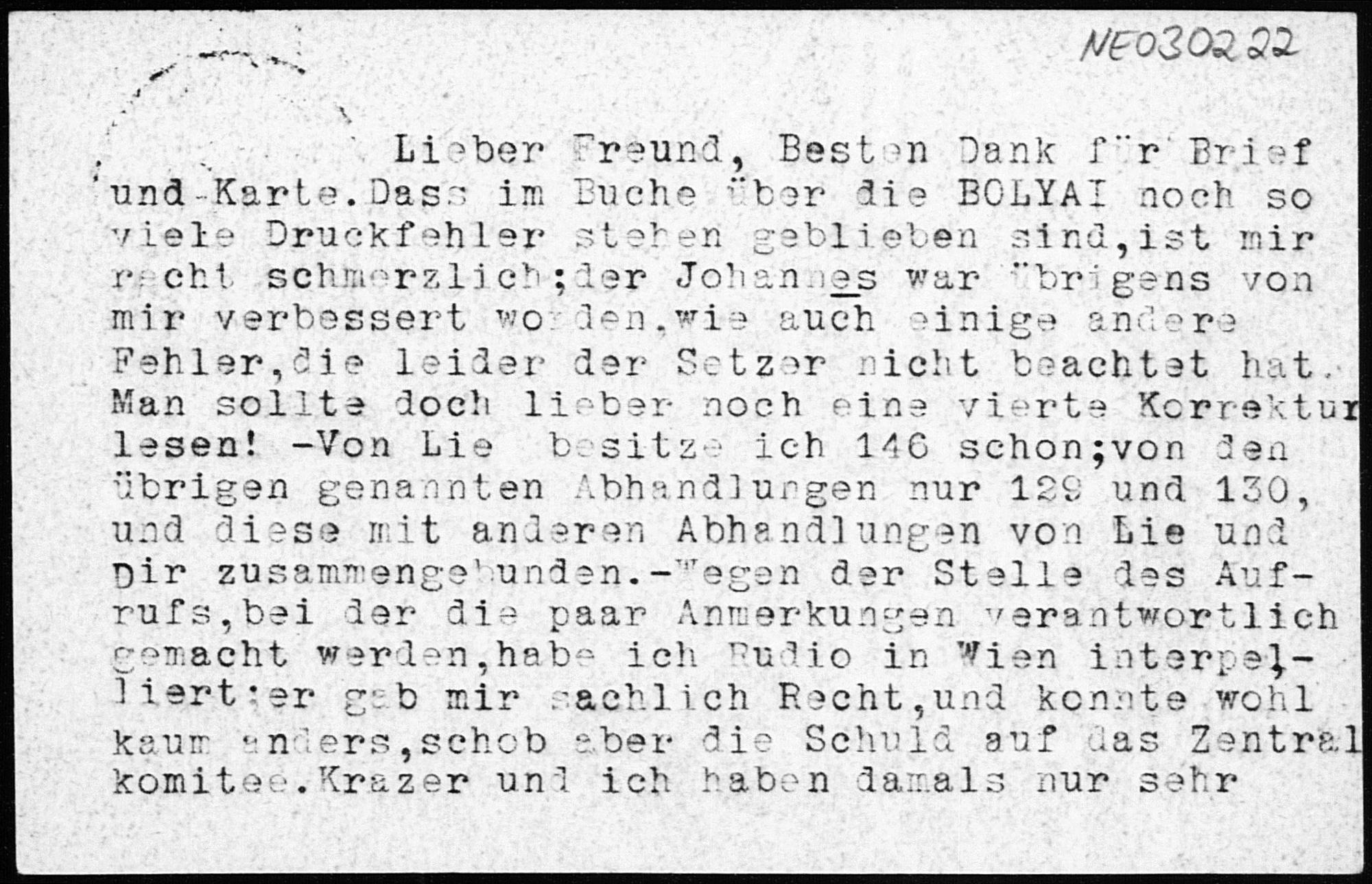 Postkarte von Paul Stäckel an Friedrich Engel vom 27.11.1913