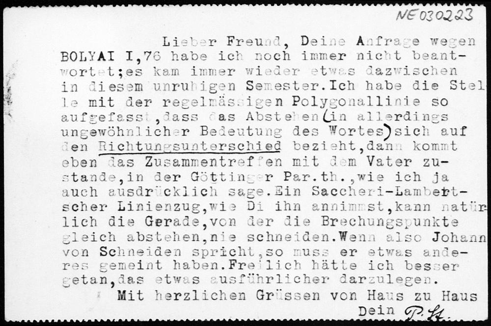 Postkarte von Paul Stäckel an Friedrich Engel vom Dezember 1913