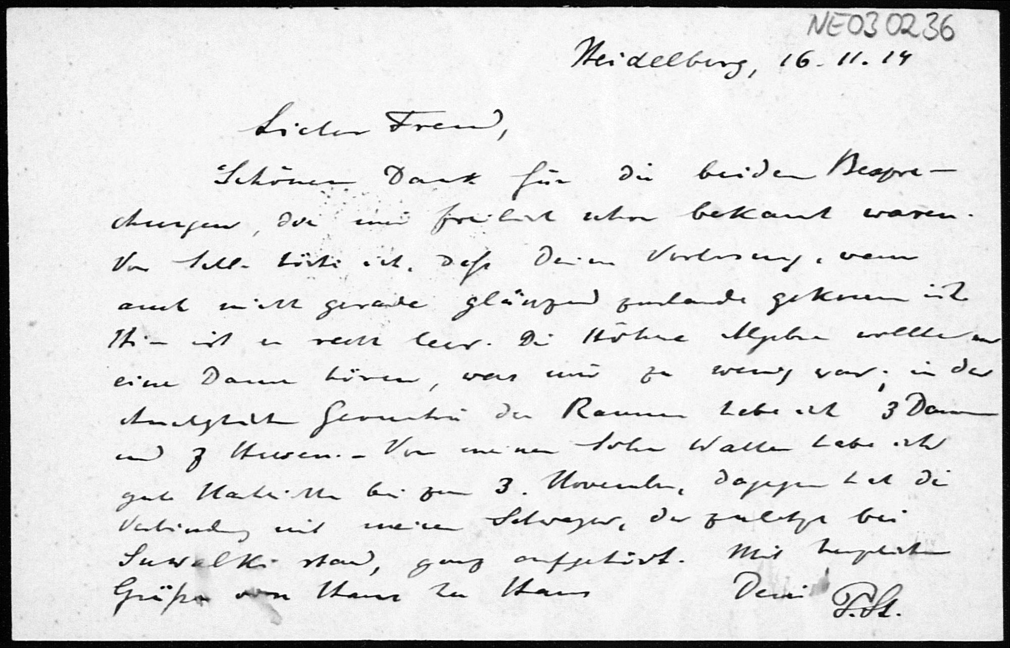 Postkarte von Paul Stäckel an Friedrich Engel vom 16.11.1914