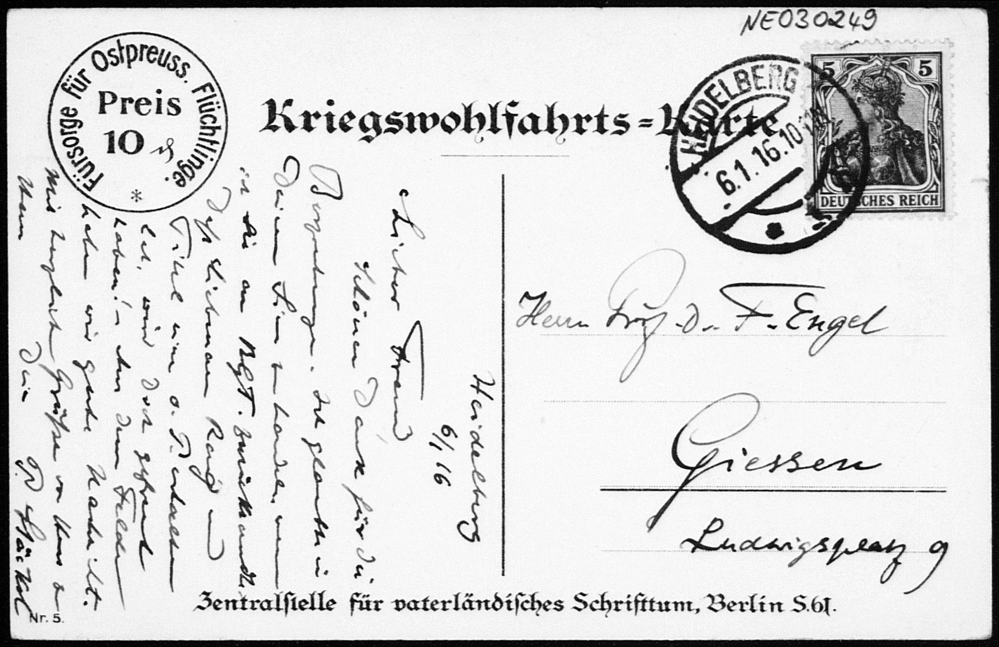 Ansichtskarte von Paul Stäckel an Friedrich Engel vom 6.1.1916