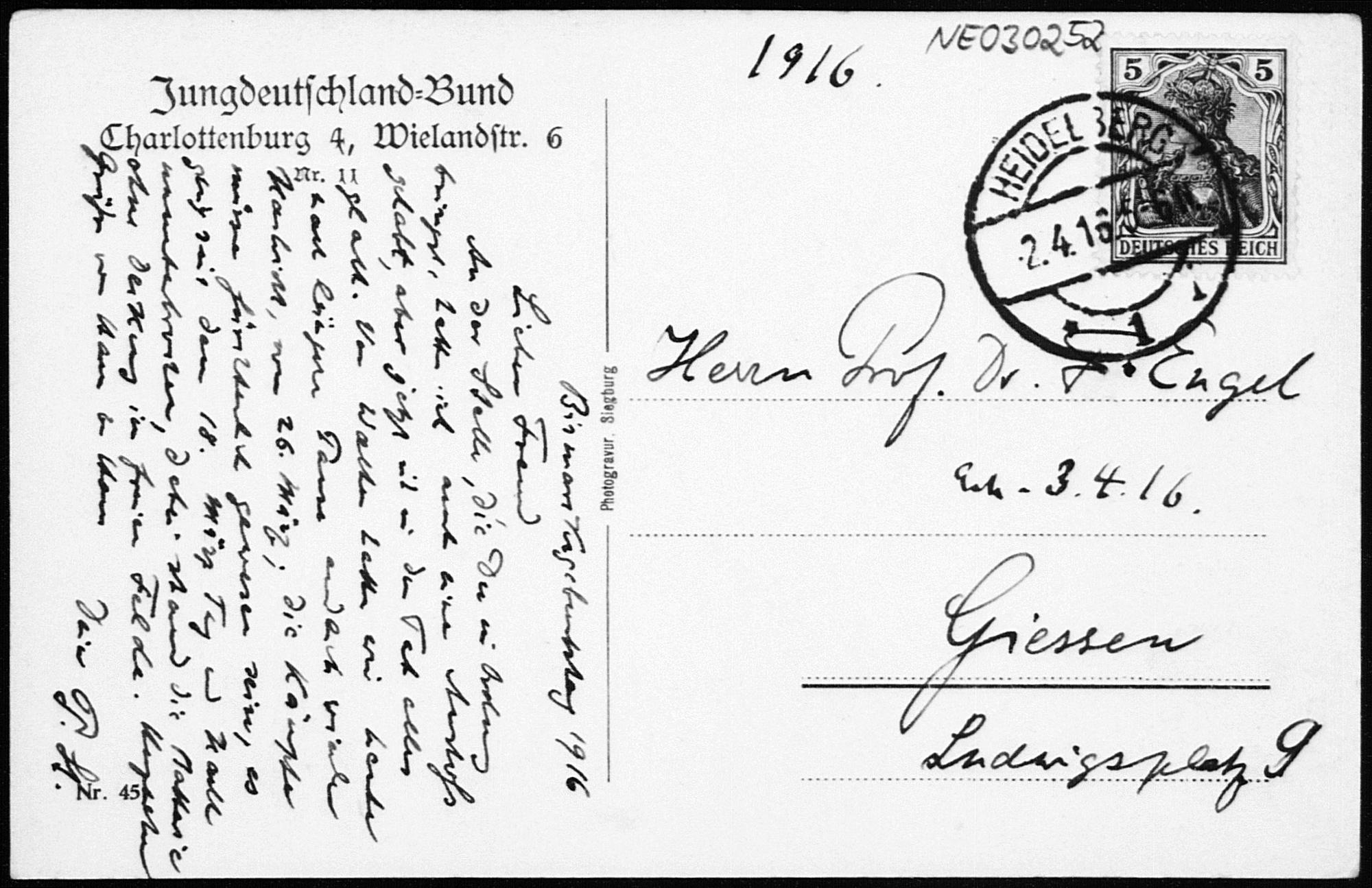 Ansichtskarte von Paul Stäckel an Friedrich Engel vom 2.4.1916