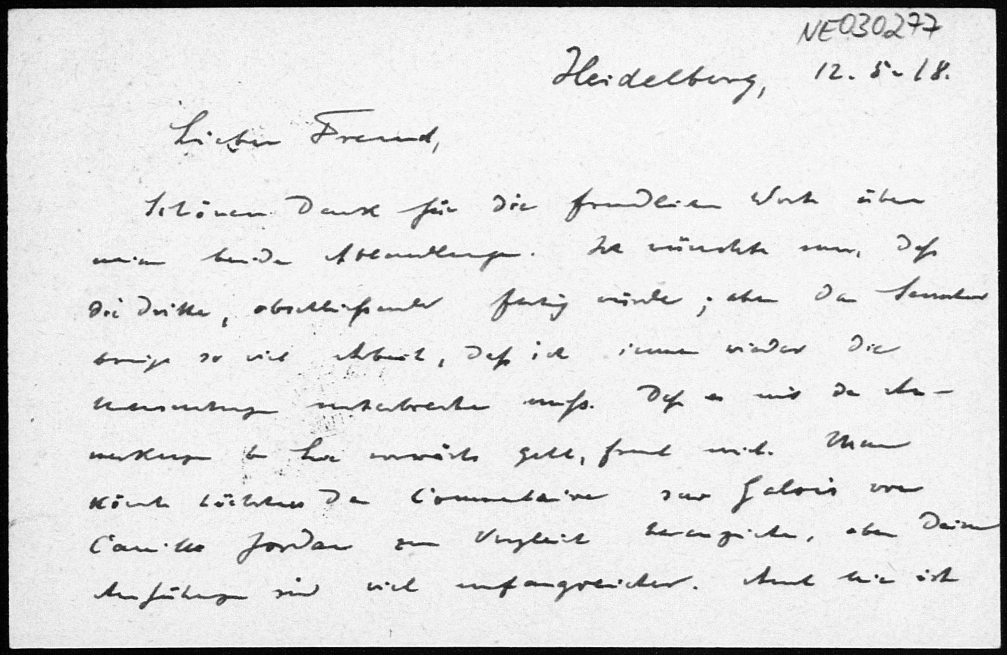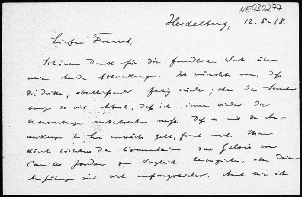 Postkarte von Paul Stäckel an Friedrich Engel vom 12.5.1918