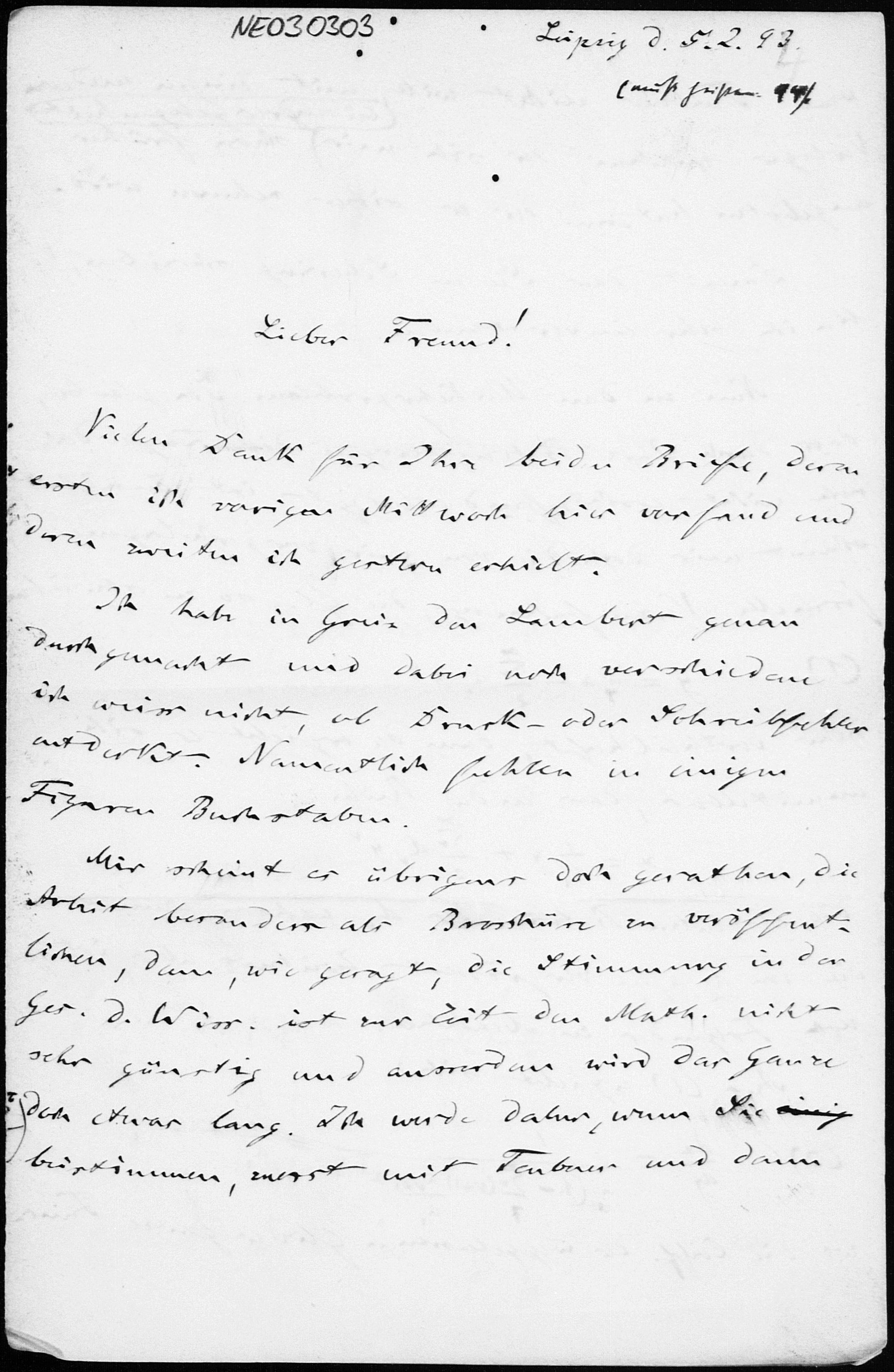 Brief von Friedrich Engel an Paul Stäckel vom 5.2.1894