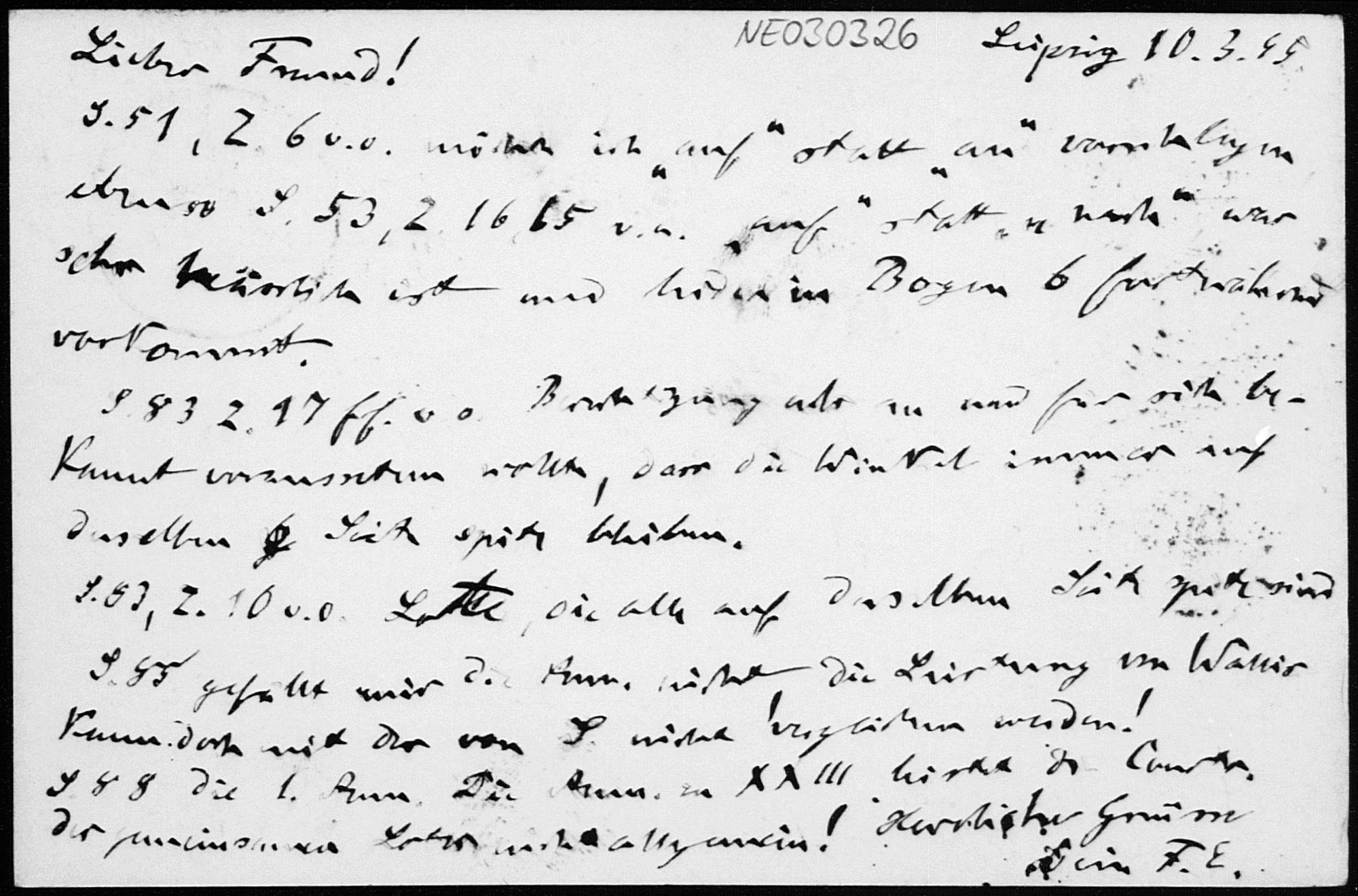 Postkarte von Friedrich Engel an Paul Stäckel vom 10.3.1895