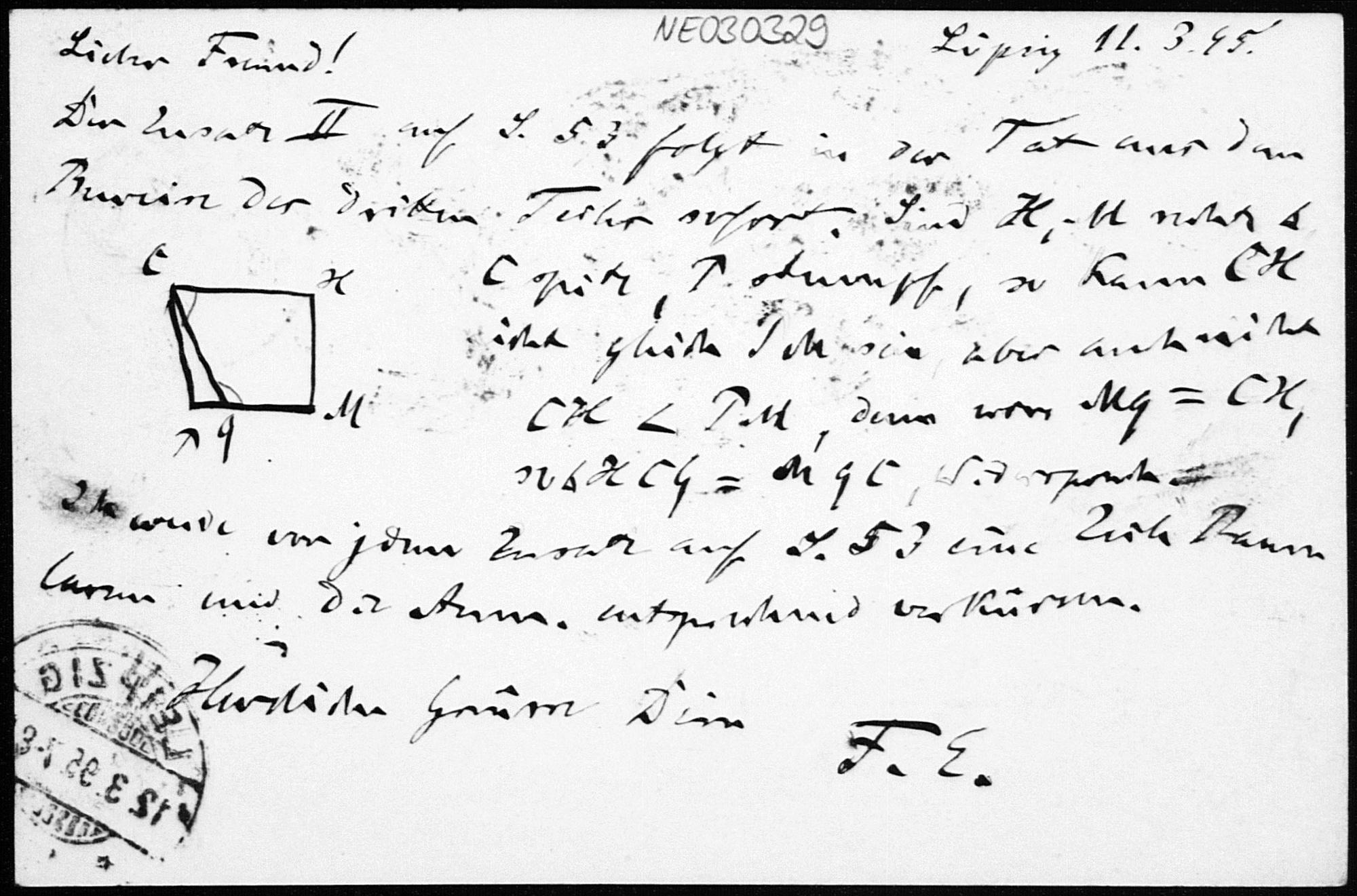 Postkarte von Friedrich Engel an Paul Stäckel vom 11.3.1895