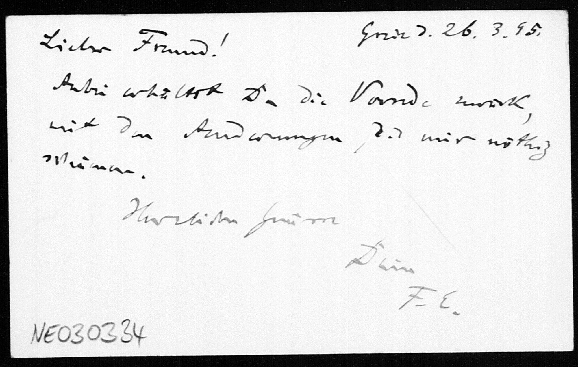 Visitenkarte von Friedrich Engel an Paul Stäckel vom 26.3.1895