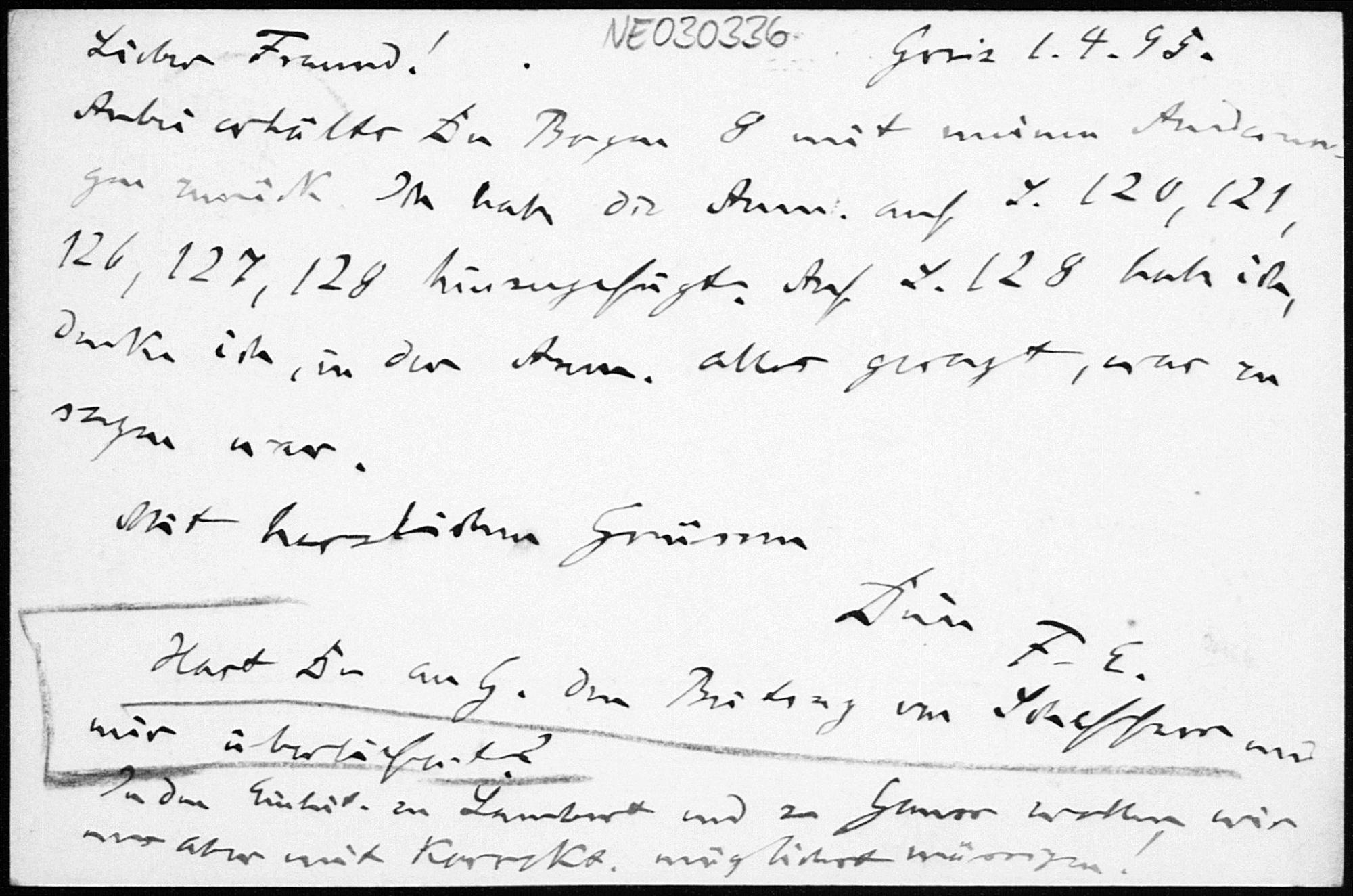 Postkarte von Friedrich Engel an Paul Stäckel vom 1.4.1895