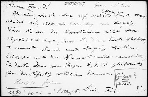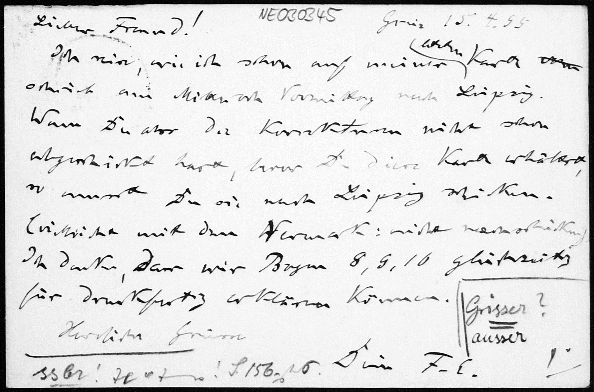 Postkarte von Friedrich Engel an Paul Stäckel vom 15.4.1895