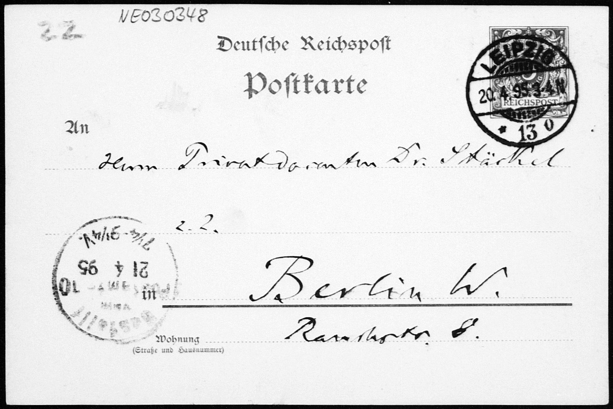 Postkarte von Friedrich Engel an Paul Stäckel vom 20.4.1895