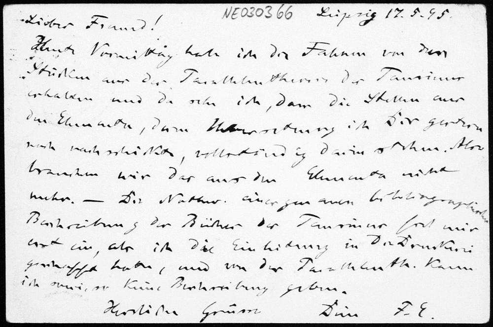Postkarte von Friedrich Engel an Paul Stäckel vom 17.5.1895