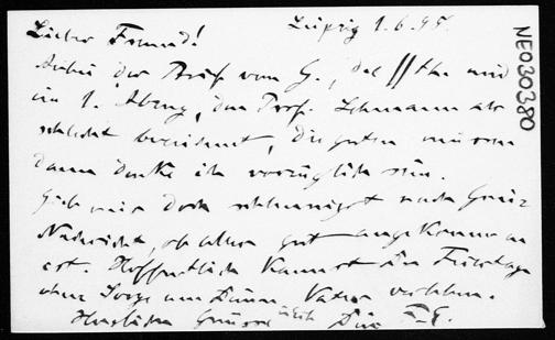 Visitenkarte von Friedrich Engel an Paul Stäckel vom 1.6.1895