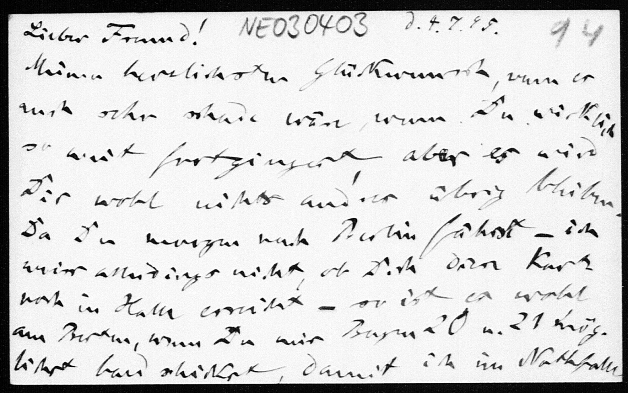 Visistenkarte von Friedrich Engel an Paul Stäckel vom 4.7.1895