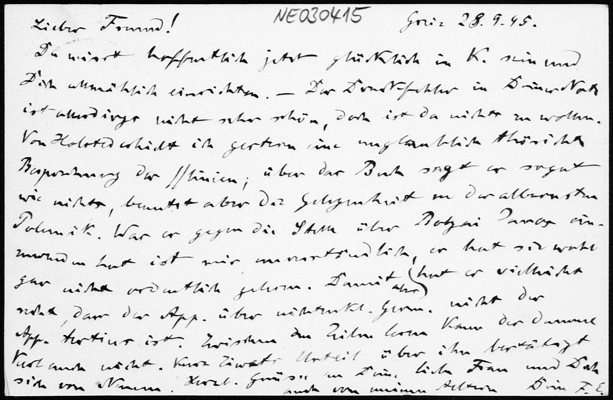 Postkarte von Friedrich Engel an Paul Stäckel vom 28.9.1895