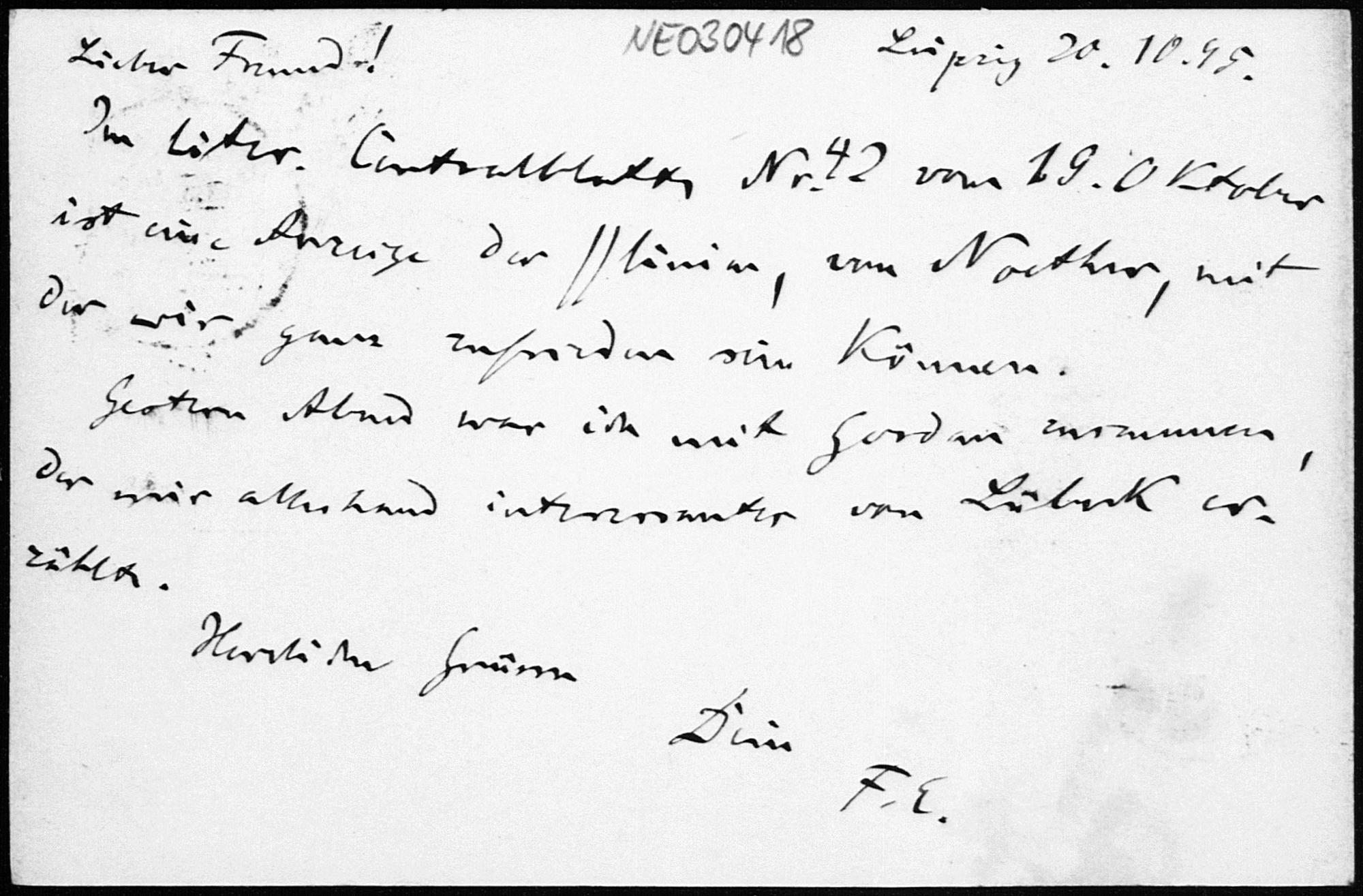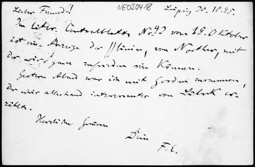 Postkarte von Friedrich Engel an Paul Stäckel vom 20.10.1895