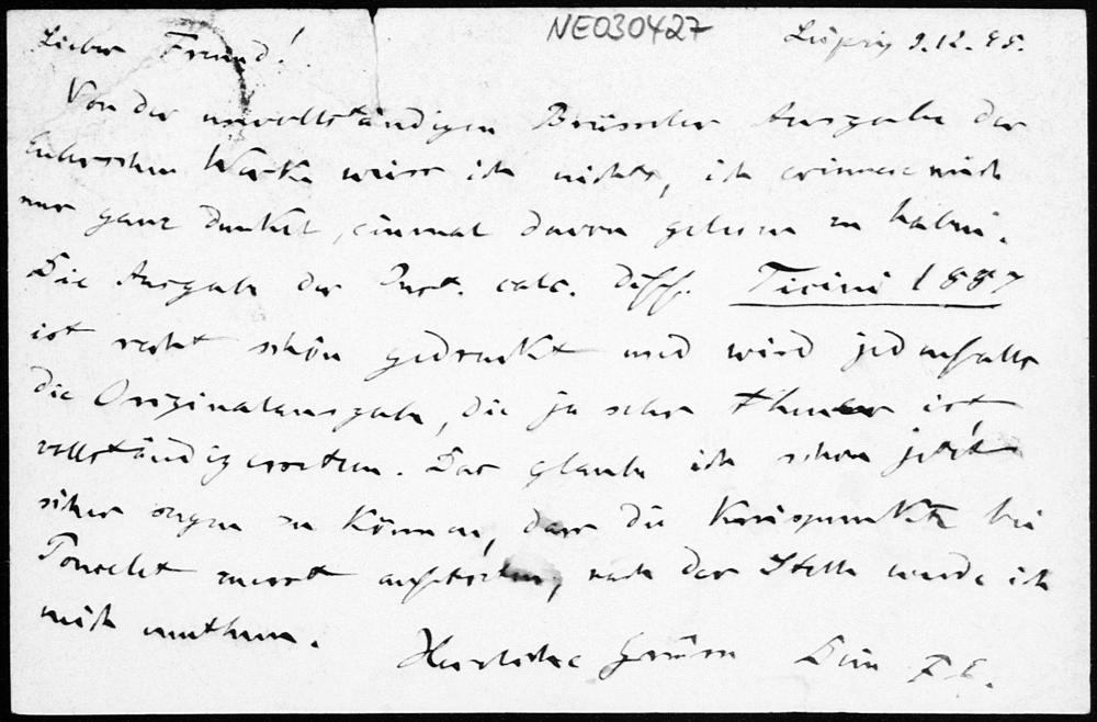 Postkarte von Friedrich Engel an Paul Stäckel vom 9.12.1895
