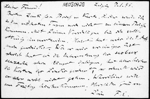 Postkarte von Friedrich Engel an Paul Stäckel vom 7.1.1896