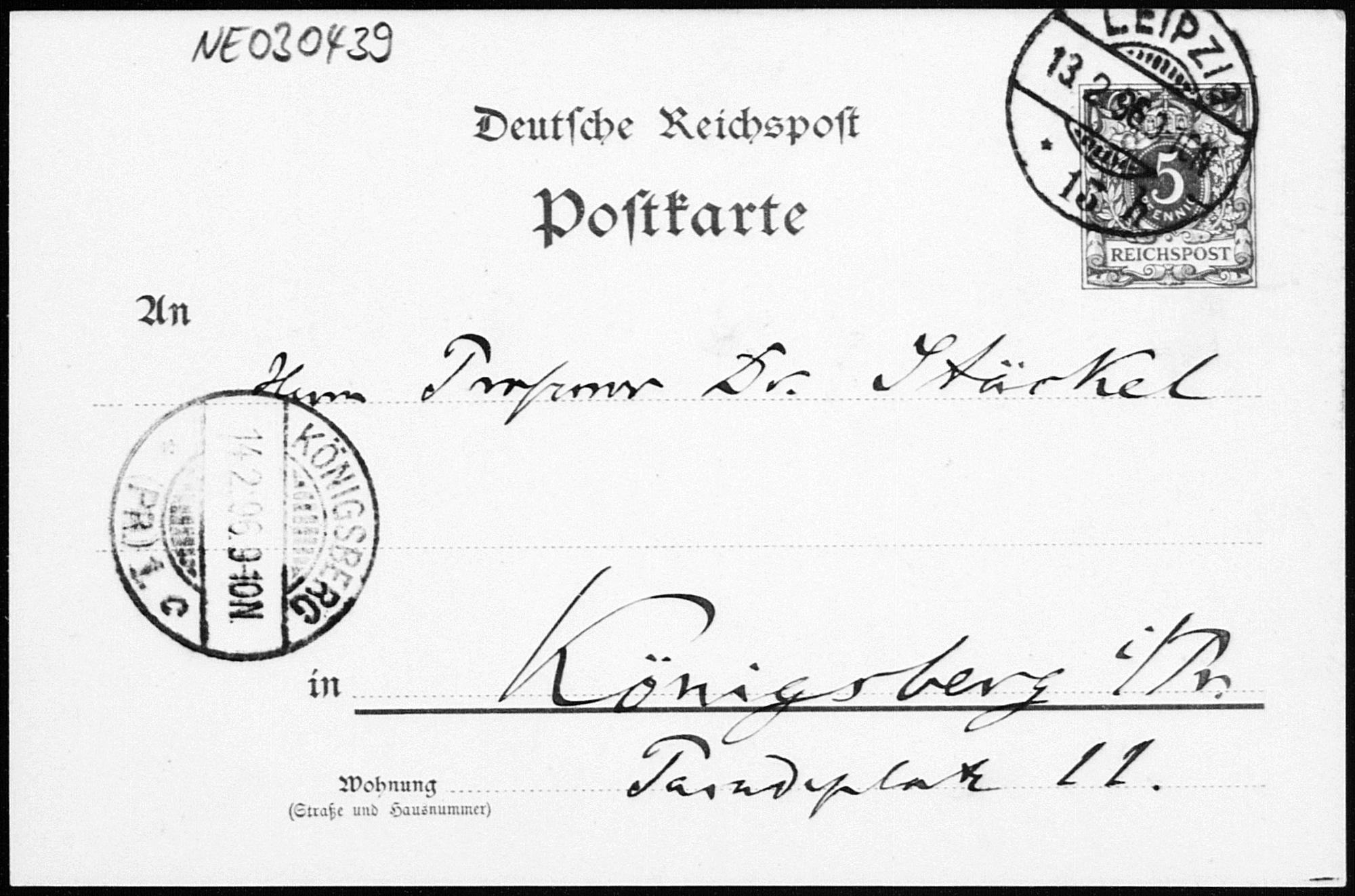 Postkarte von Friedrich Engel an Paul Stäckel vom 13.2.1896