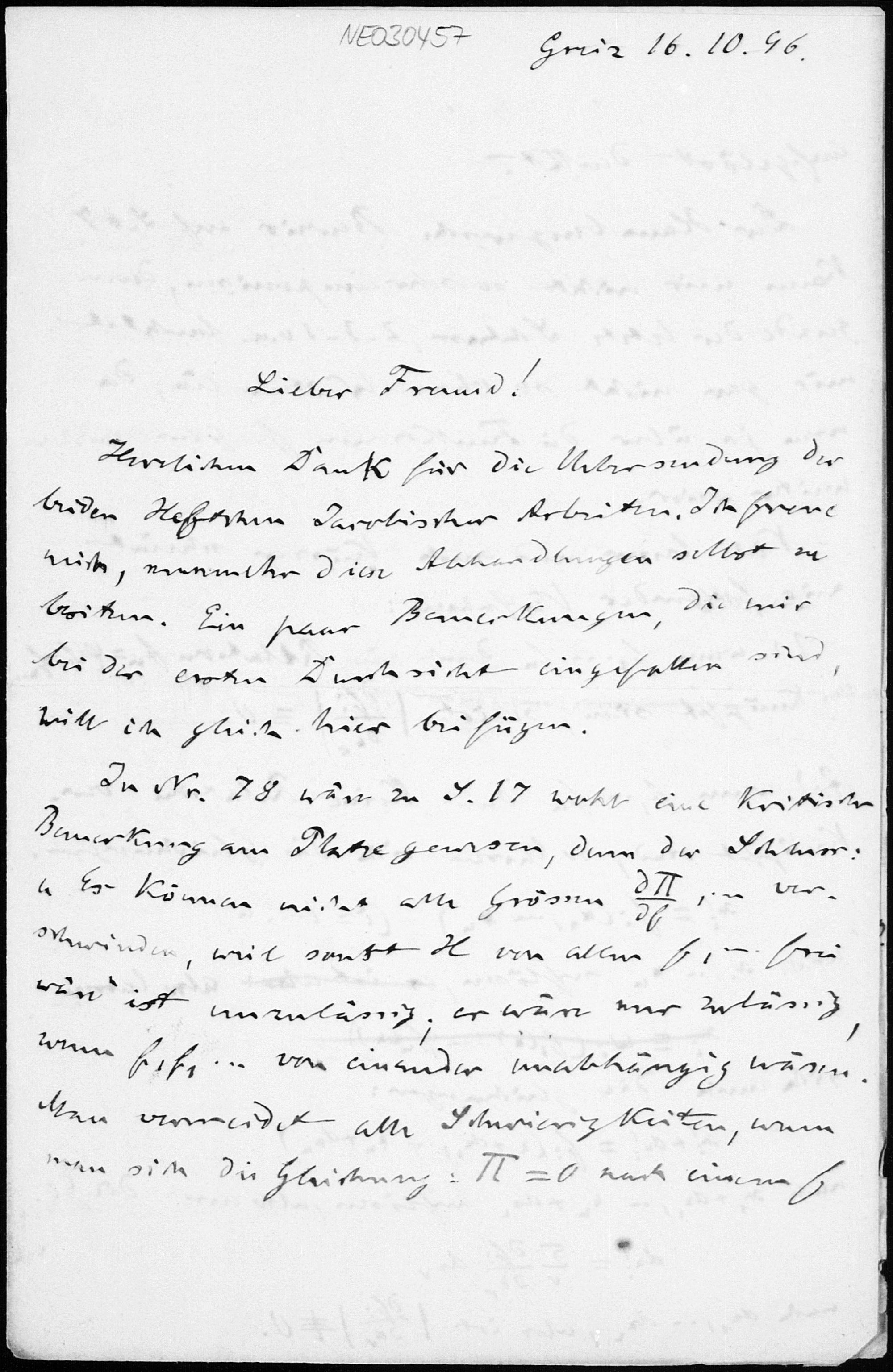 Brief von Friedrich Engel an Paul Stäckel vom 16.10.1896