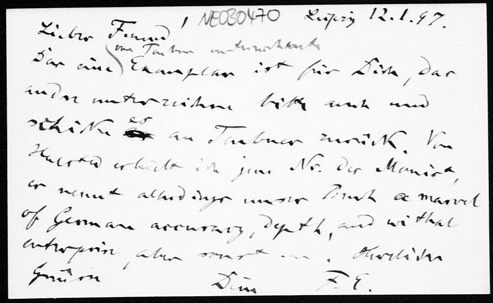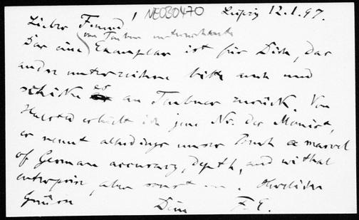 Visitenkarte von Friedrich Engel an Paul Stäckel vom 12.1.1897