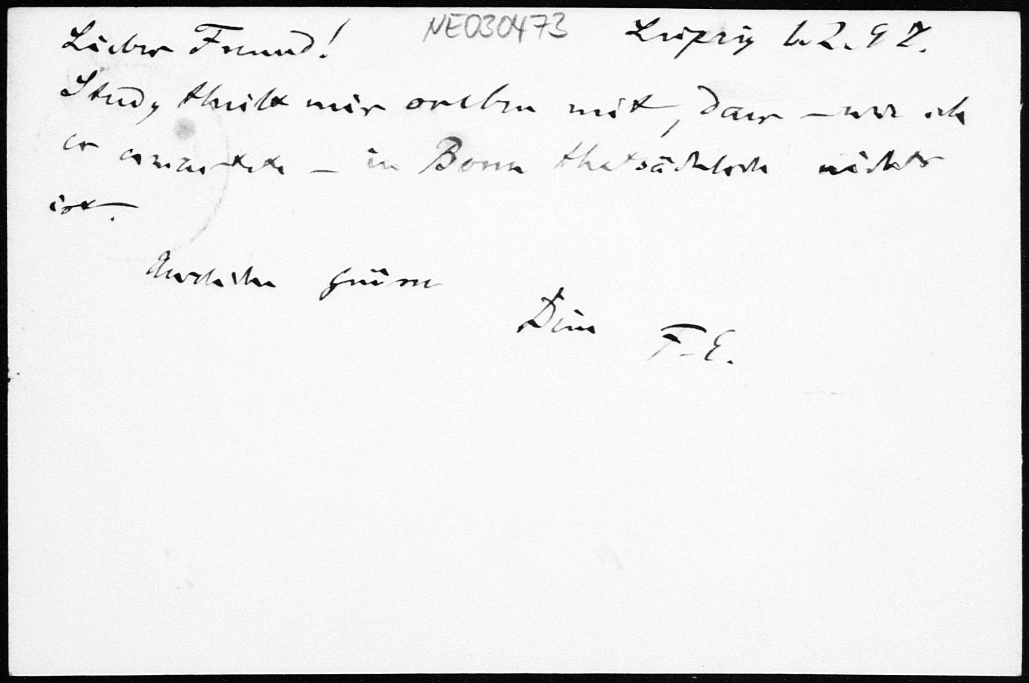 Postkarte von Friedrich Engel an Paul Stäckel vom 1.2.1897