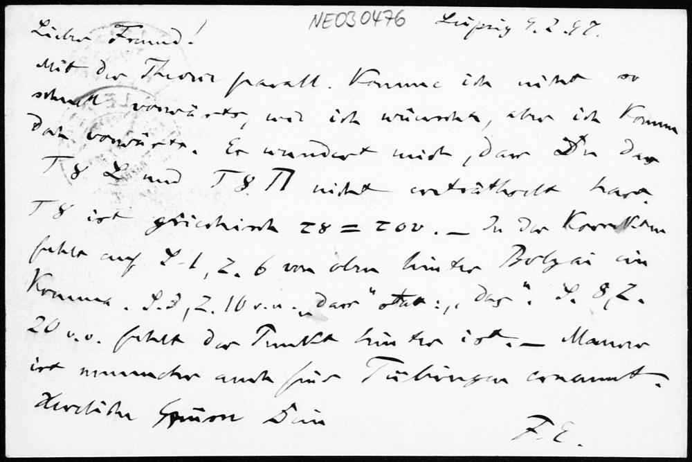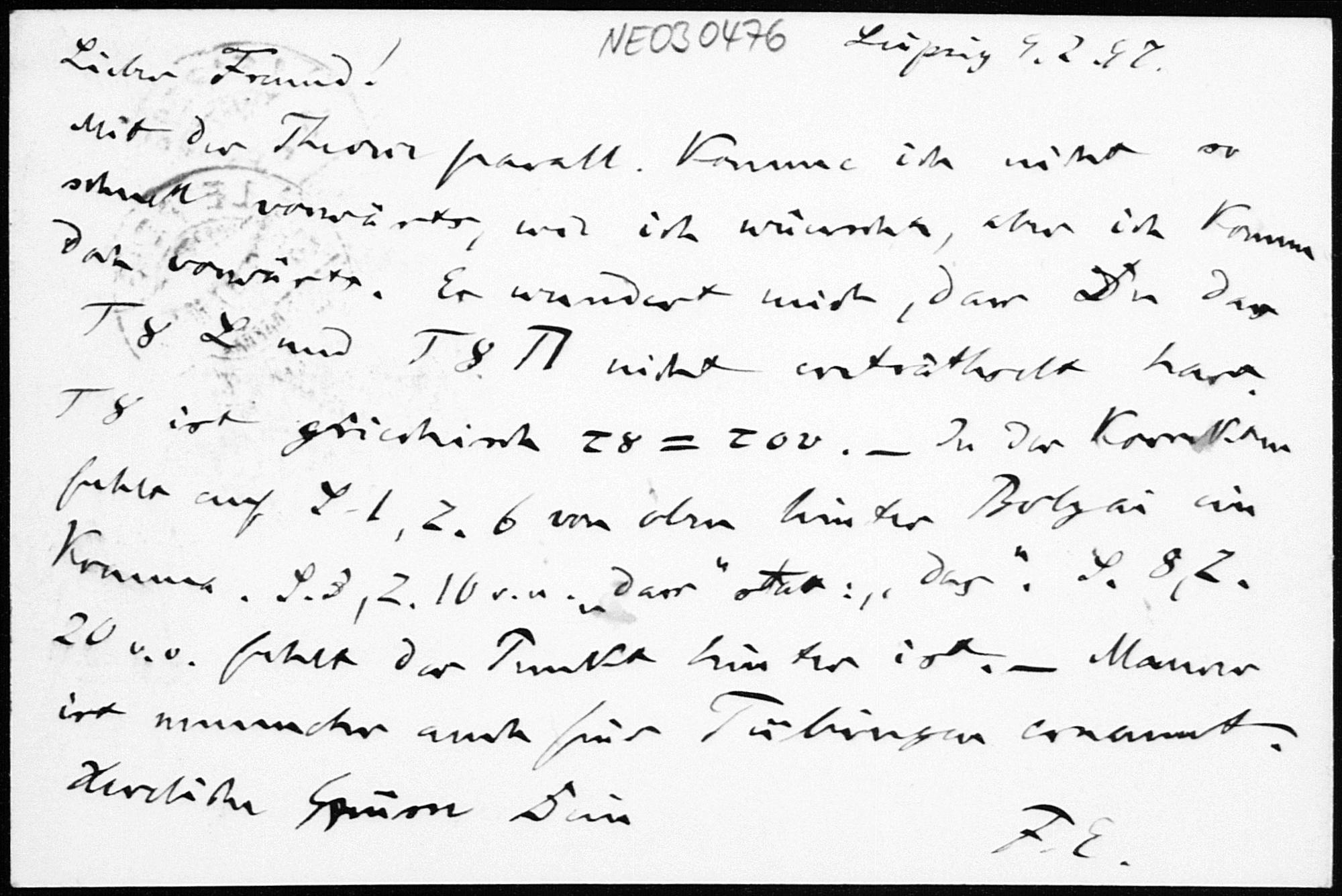 Postkarte von Friedrich Engel an Paul Stäckel vom 9.2.1897