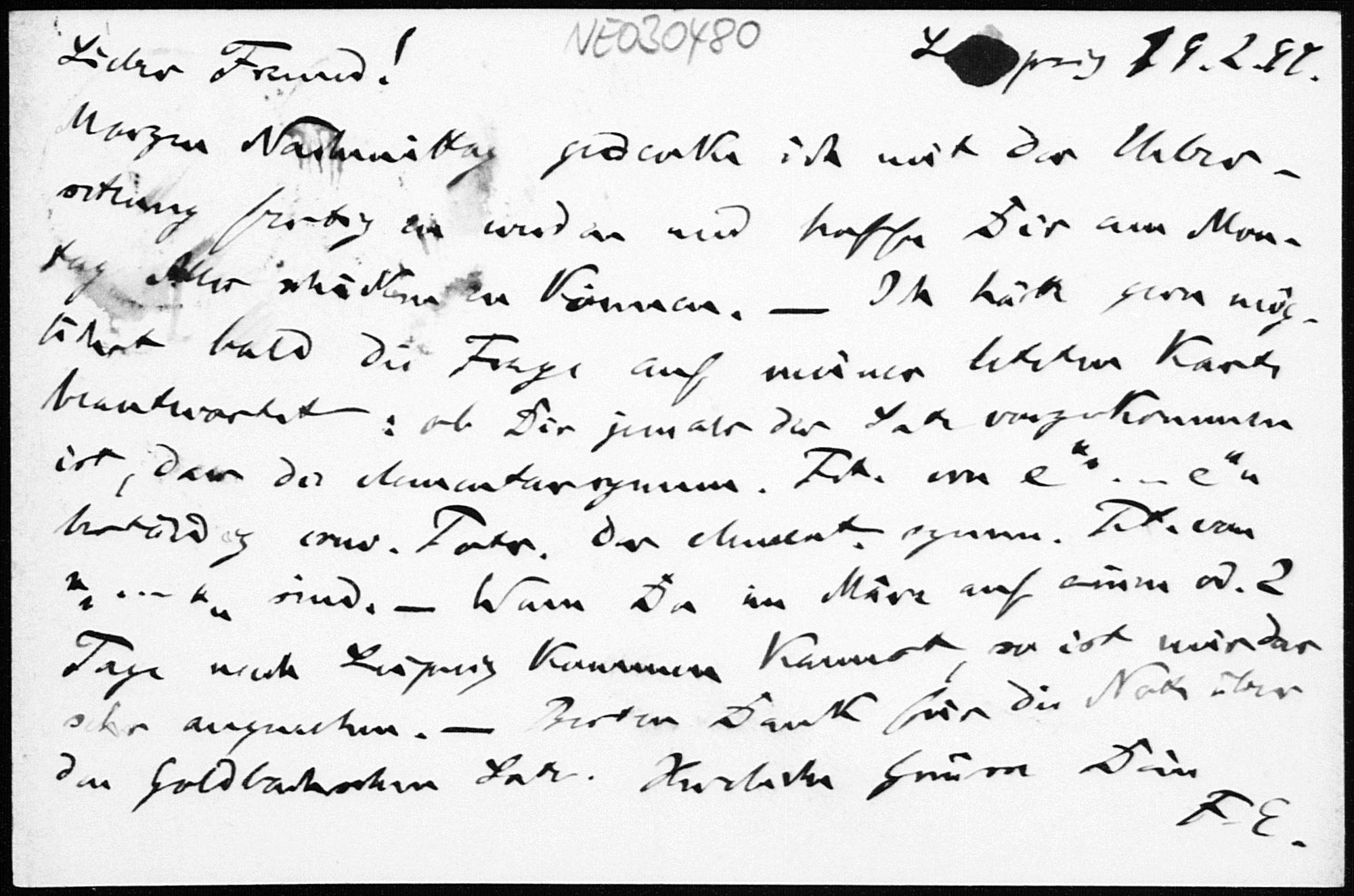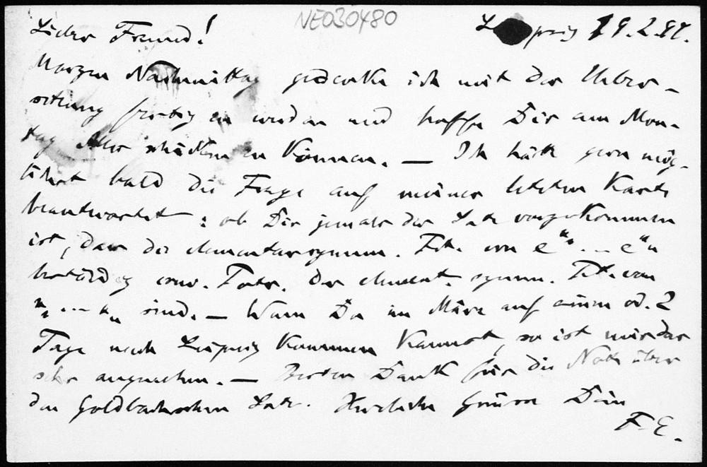 Postkarte von Friedrich Engel an Paul Stäckel vom 19.2.1897