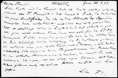 Postkarte von Friedrich Engel an Paul Stäckel vom 20.3.1897