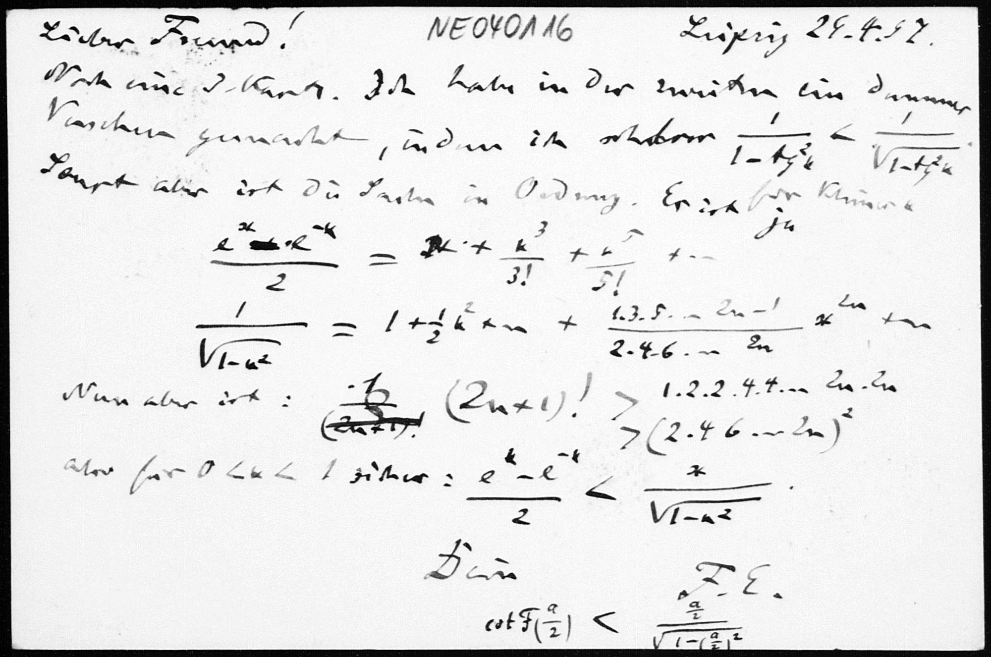 Postkarte von Friedrich Engel an Paul Stäckel vom 29.4.1897