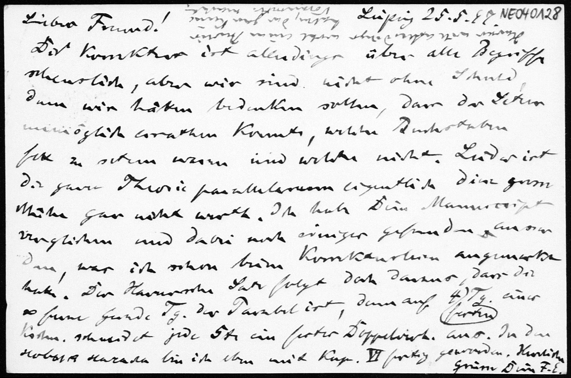 Postkarte von Friedrich Engel an Paul Stäckel vom 25.5.1897