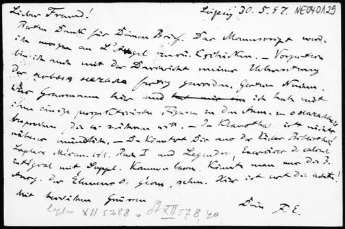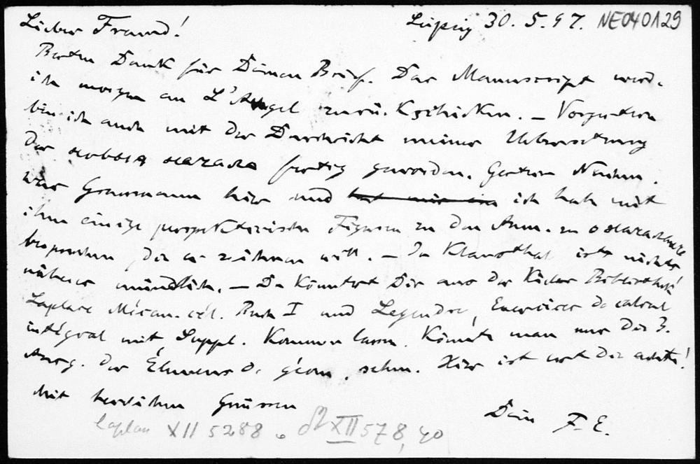 Postkarte von Friedrich Engel an Paul Stäckel vom 30.5.1897