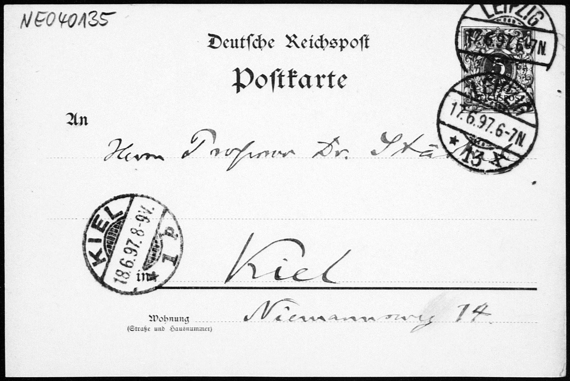 Postkarte von Friedrich Engel an Paul Stäckel vom 17.6.1897