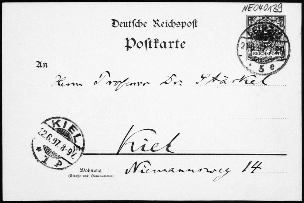 Postkarte von Friedrich Engel an Paul Stäckel vom 21.6.1897