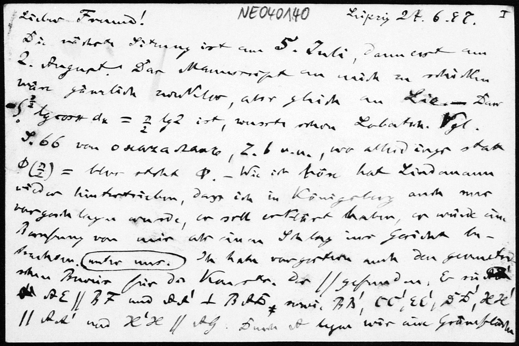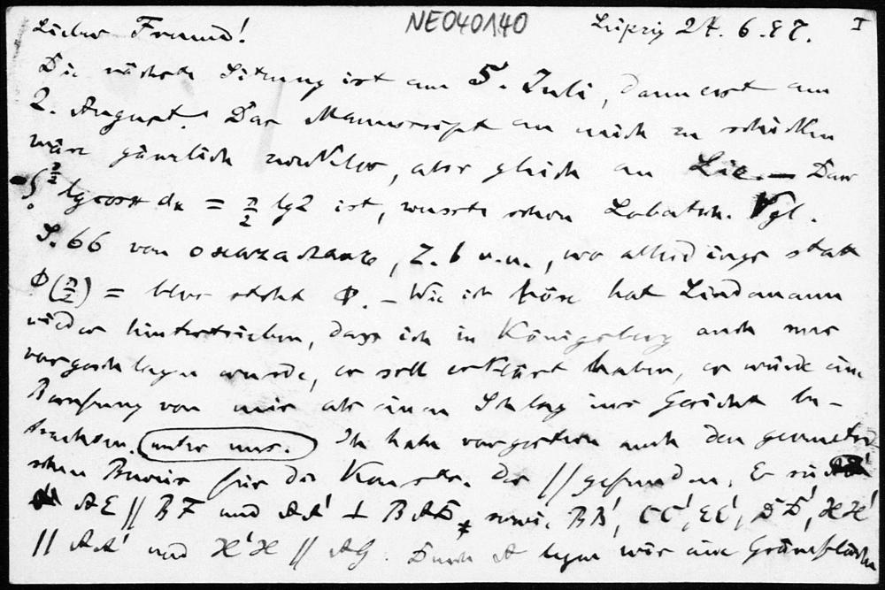 Postkarte von Friedrich Engel an Paul Stäckel vom 24.6.1897