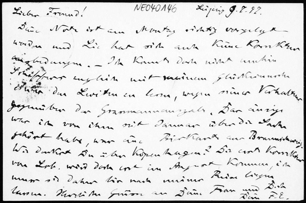 Postkarte von Friedrich Engel an Paul Stäckel vom 9.7.1897
