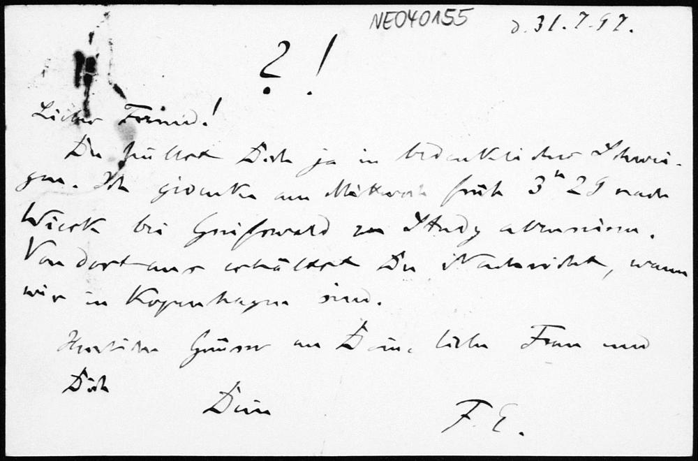 Postkarte von Friedrich Engel an Paul Stäckel vom 31.7.1897