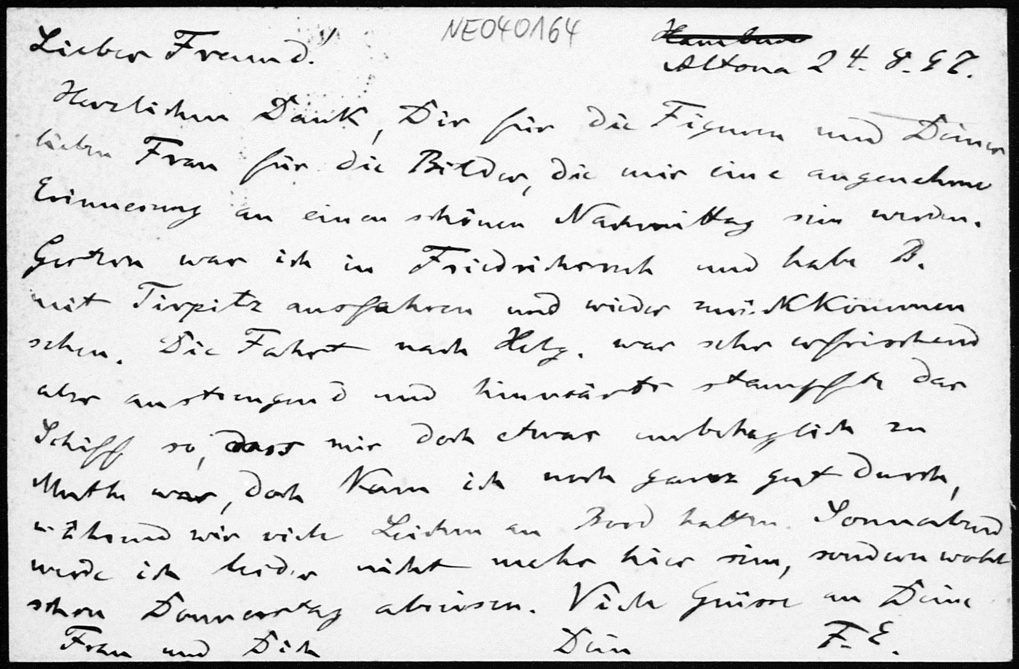 Postkarte von Friedrich Engel an Paul Stäckel vom 24.8.1897