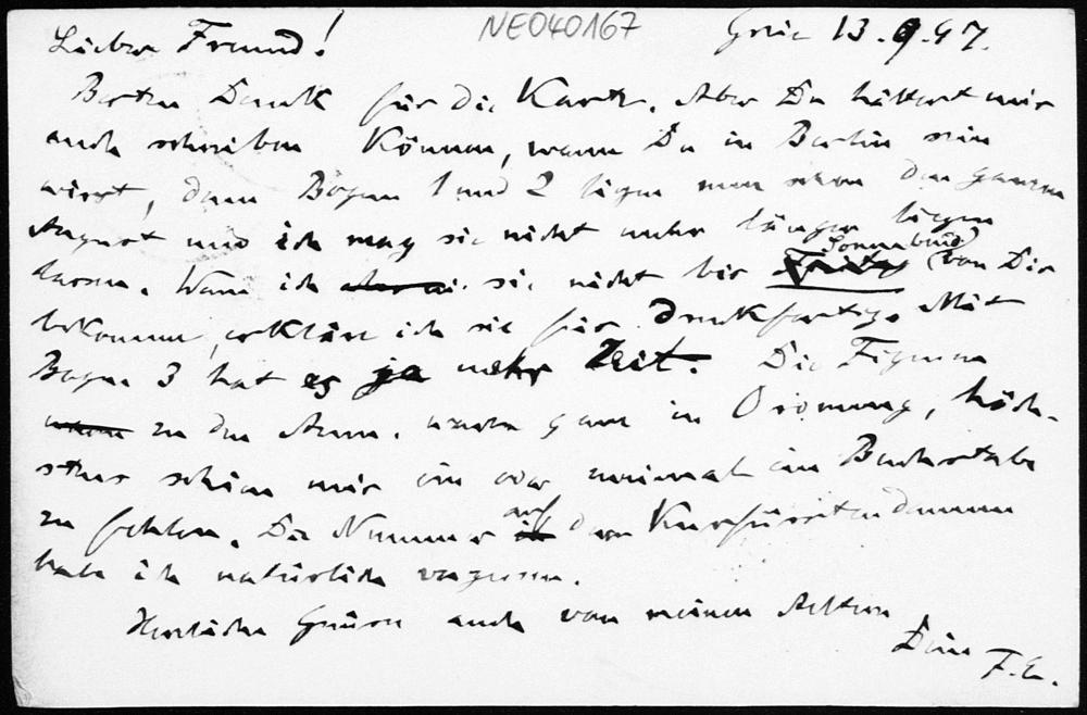 Postkarte von Friedrich Engel an Paul Stäckel vom 13.9.1897